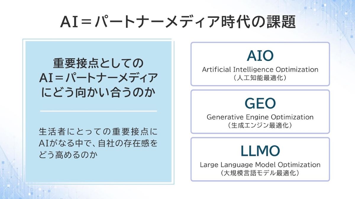 メディア業界でも、AIO(人工知能最適化)やGEO(生成エンジン最適化)、LLMO(大規模言語モデル最適化)という言葉が存在感を増しつつあります。