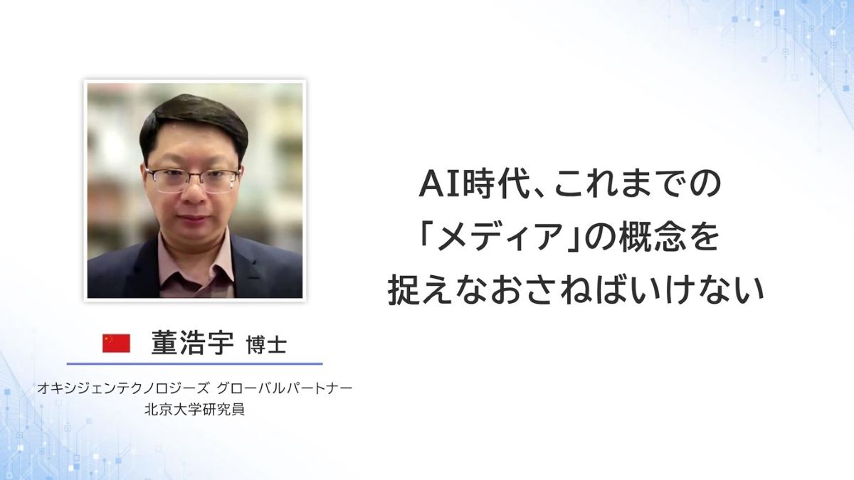 まず中国では、AIデジタルマーケティングの先進企業、オキシジェンテクノロジーズのグローバルパートナーであり、北京大学の研究員でもある董浩宇博士です。