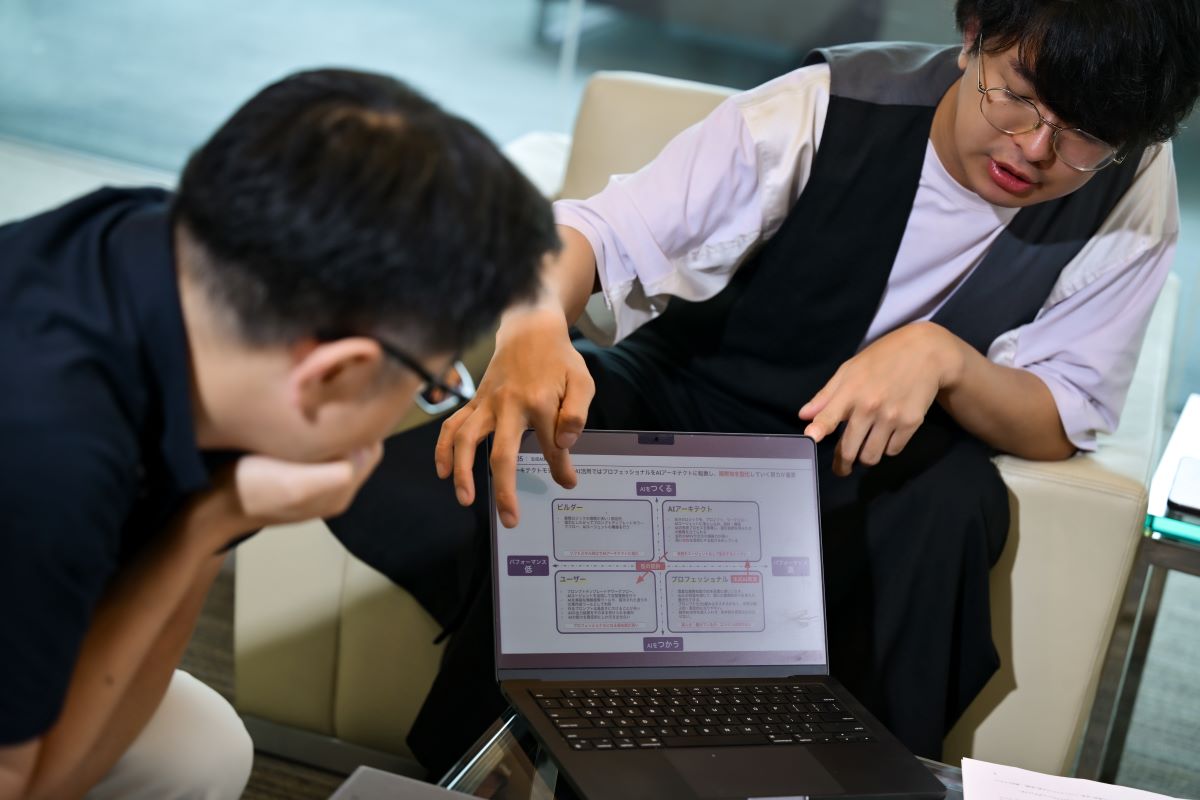 - 僕は「ビルダー」と「プロフェッショナル」の連携が重要だと思っています。まだ経験が浅い若手層は、業務パフォーマンスが低い一方、プロンプトやワークフローを設計できる“作る側”のスキルを持っていることがあり、僕はこの役割をビルダーと呼んでいます。このビルダーが、普段から高いパフォーマンスを発揮する “使う側(プロフェッショナル)”にインタビューを行う形で進めていくのです。