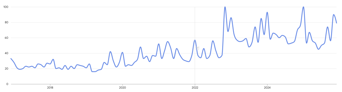 事実、ここ10年でのウィッシュリストの検索数はこんなに伸びています。