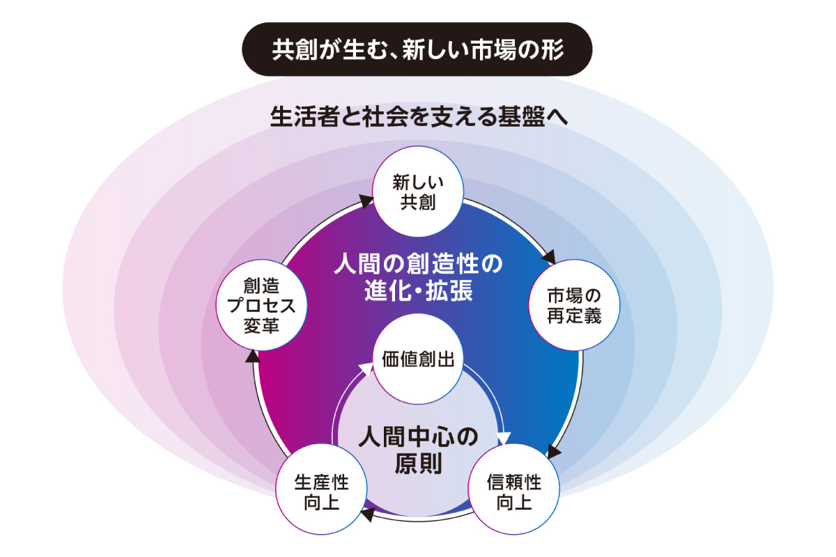 AIを創造性や協働のプロセスに生かし、社員・顧客・生活者との新たなつながりから市場を再定義する取り組みを進めている