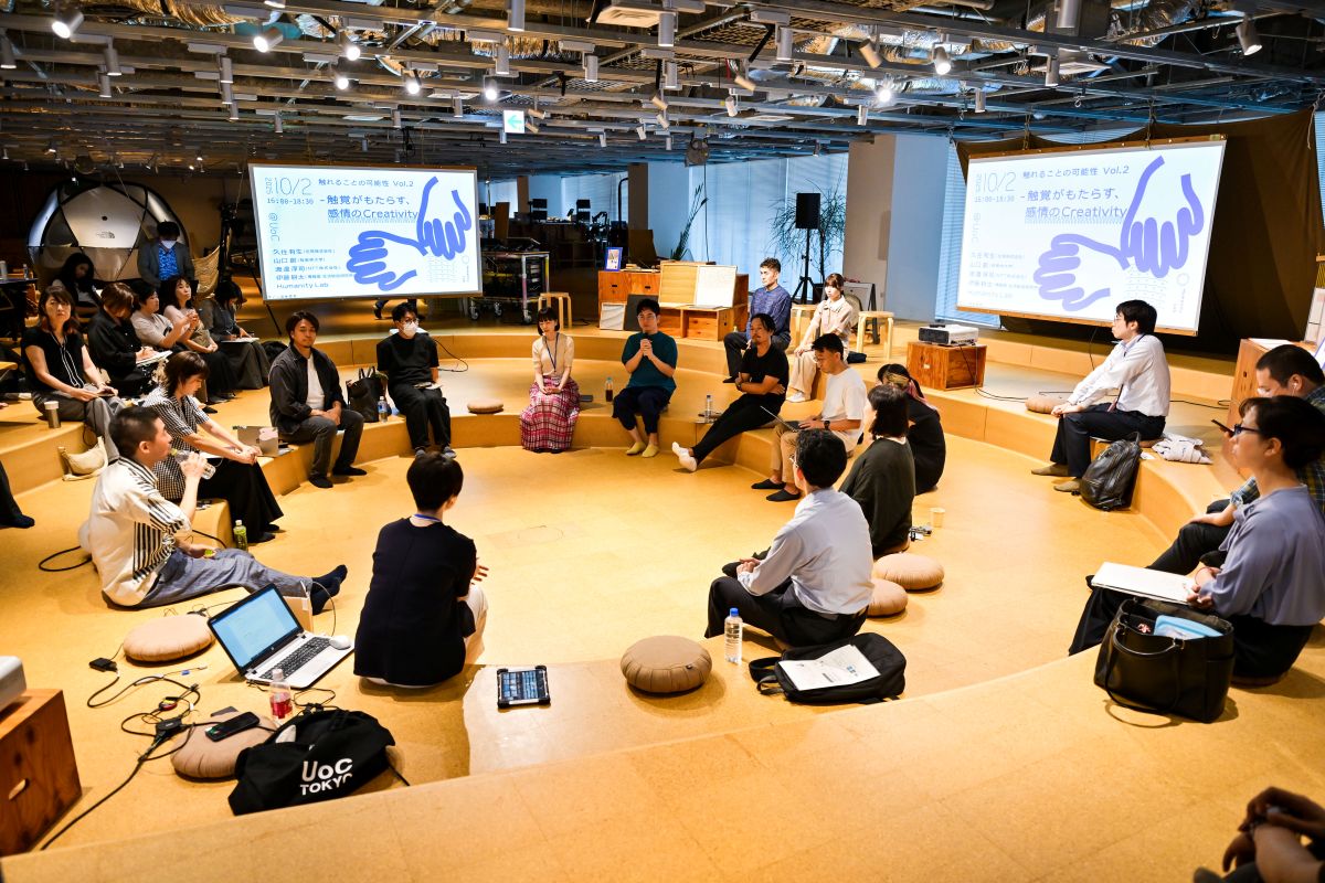 テーマトークの後はパネリストに加えてHumanity LabやUoCのメンバー、そしてイベントの参加者を交え、触覚にまつわるダイアローグが繰り広げられました。