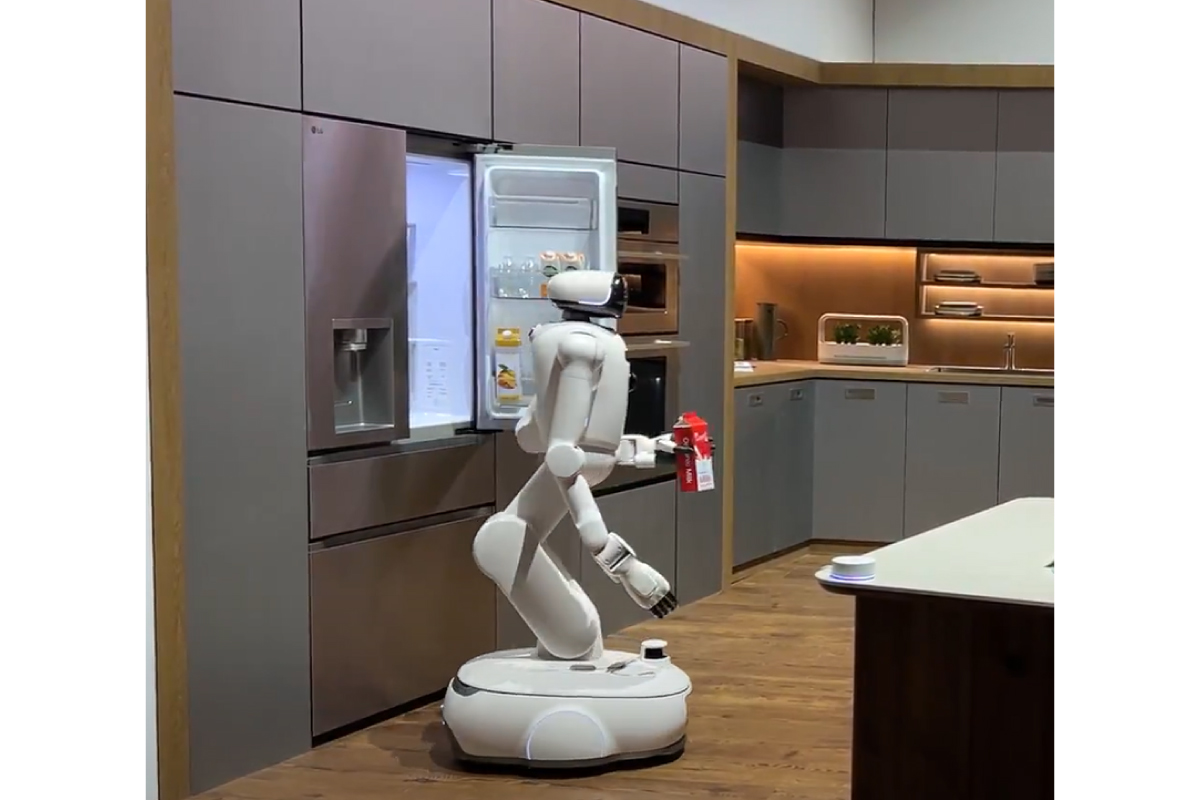 さらにLGブースで披露されたデモは、ヒューマノイドが家電・空間・人をつなぎ、生活の段取りそのものを代行する未来を示すものでした。車輪走行で滑らかに移動し、上半身に多関節アームと指を備えたCLOiDは、ただ「動く」だけではない。「家電製品と空間、そしてあなたをシームレスにつなぎ、真に有意義な一日を創り出す仲間(コンパニオン)」として設計されている、という説明が印象に残りました。