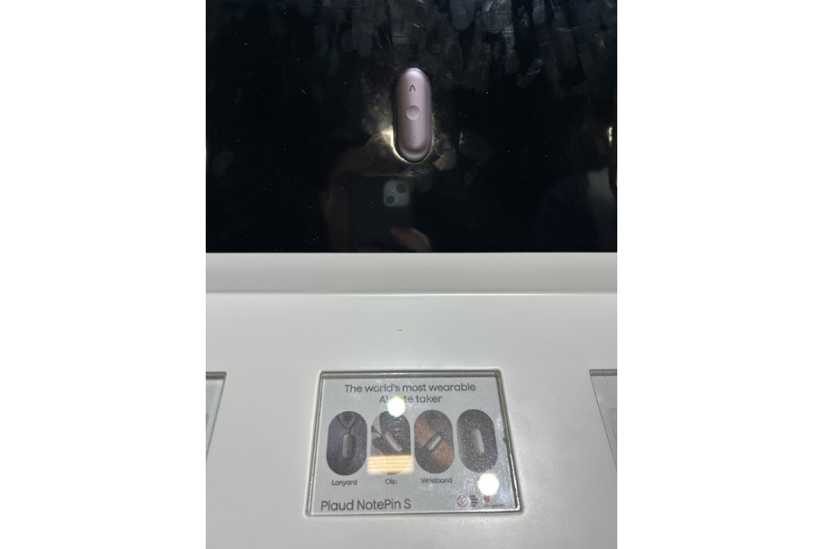 特に「仕事における脳の拡張」という文脈で注目されていたのがPlaud(プラウド)社のウェアラブル「NotePin S」。約17gのカプセル型で、襟元に留めたり首から下げたり、腕に巻いたりと、“ピン”のように身につけられます。