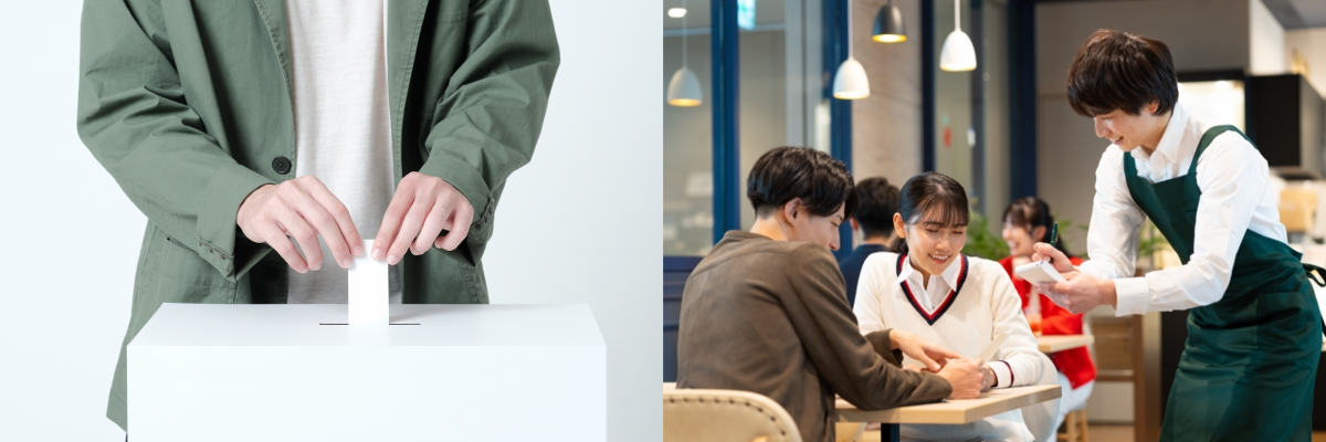 20年以上前のとある歌詞を元ネタとした、投票に行った後に外食する、という行動がいつしかSNSでミーム化し、昨今には、こうしたネタを知らずとも投票後に飲食店でのちょっと良い食事や、買い物といったご褒美的行動をし、SNSで共有することを楽しんでいる人が増えているようです。中には、投票が「いつしか行ってみたいと思っていたお店に思い切って行く」良い口実になっているような方もSNSで散見されました。ちなみに海外でも投票したことを示す券や写真によって割引するサービスを展開する飲食店や洋服店が多い地域はあるようです。こうした投票に対するご褒美は、投票をする本来の目的がすり替わってしまうという懸念をする声もありますが、まず投票に行くハードルを下げて意識付ける、という意味では、広がっても良い文化ではないかなと個人的には思いました。