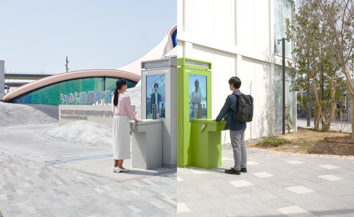 大阪・関西万博に来場した人同士がつながる「いのちふれあう伝話」(いのち動的平衡館(左)とNTTパビリオン(右)を接続)。 (写真:渡邊氏 提供)