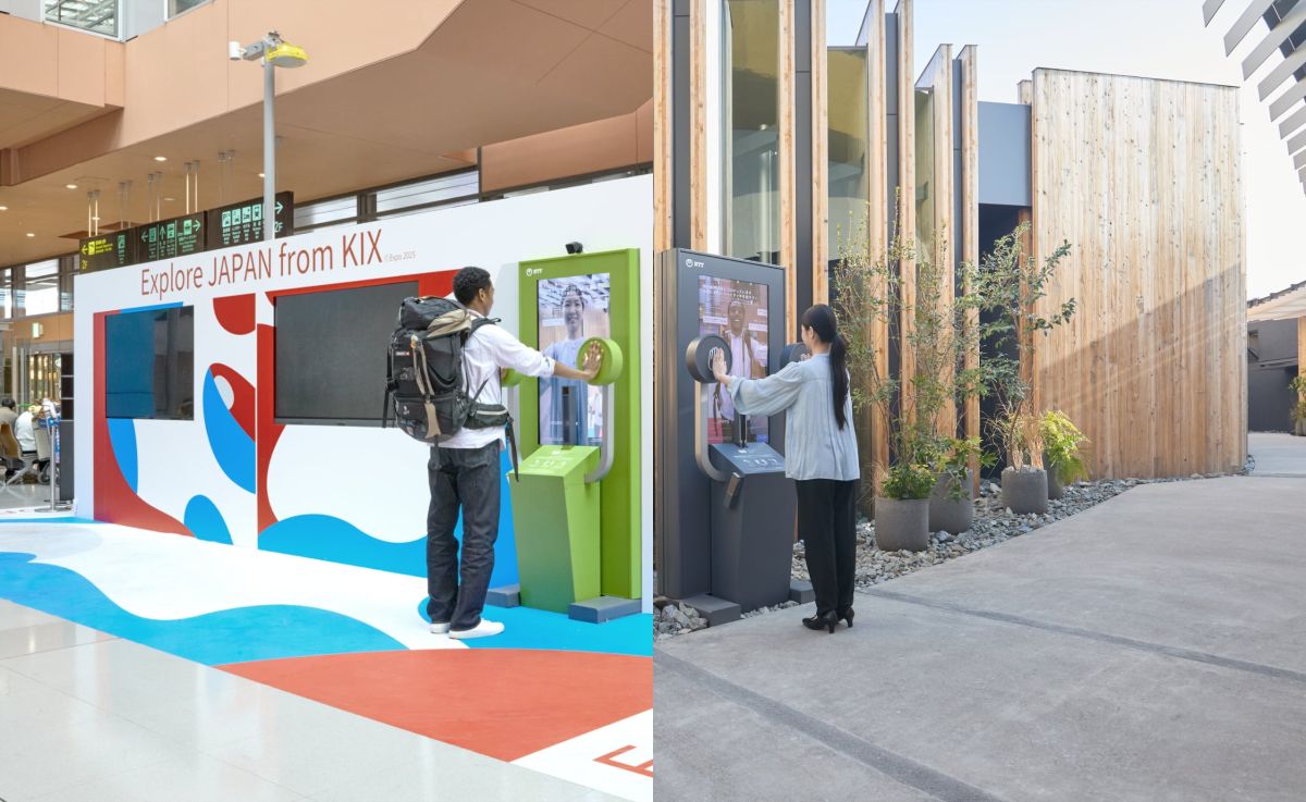 関西国際空港と大阪・関西万博に来場した人がつながる「ハイタッチでふれあう伝話」(関西国際空港(左)と日本館(右)を接続)。(写真:渡邊氏 提供)