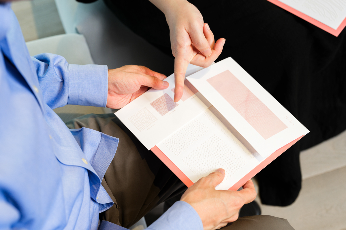 - 実際の触感に加えて「人の皮膚テクスチャーをもとに作られている」というストーリーも、テクスチャーに新しい意味や豊かさをもたらすと考えています。