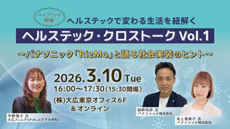 | 名称 | ヘルステックで変わる生活を紐解く「ヘルステック・クロストーク」 ~パナソニック「RizMo」と語る社会実装のヒント~ |